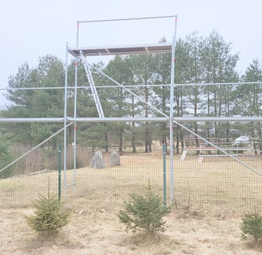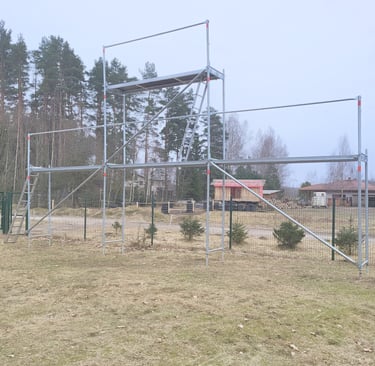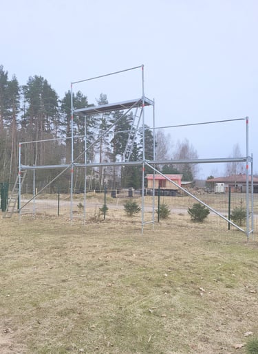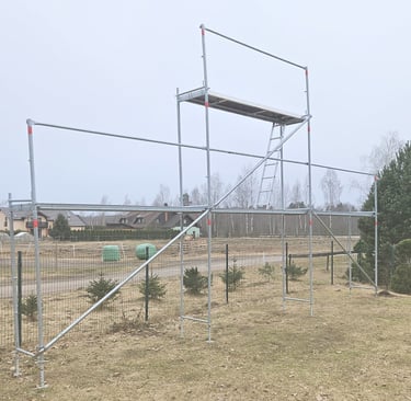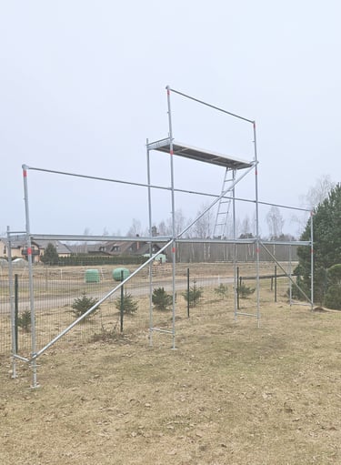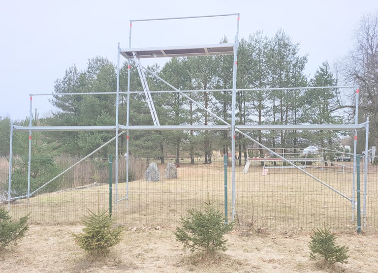 Jauns Plettac cinkotā tērauda sastatnes ar paaugstinājumu. Iespēja veikt darbus līdz 6.6m augstumam. Iespējams dažādi konfigurēt augstumu un garumu.